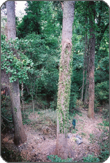 This appears to be the final death-nell for the tree. In one area of woodland in the Fernbank area, about 50% of the smaller, young trees (DBH 6-9”; height 25-45’), had died consequent to being overwhelmed by English Ivy.