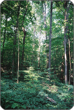 Mature, southeastern, hardwood forest is primarily structured by the older trees; these contribute most of the biomass to the more-or-less continuous canopy (Level D). The understory is comprised of the near vertical trunks and stems of the taller trees as well as younger trees and smaller tree species adapted to lower light levels (Level C). Below this is the shrub layer that includes small tree saplings as well as shrubs (Level B). Level A comprises the herbs of the forest floor but includes ferns, and the vital tree seedlings that are the forest of the future (see Kricher & Morrison, 1988, for a simple introduction to southeastern forest).