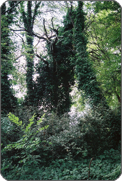Trees overwhelmed by English Ivy. Inman Park, north-east Atlanta