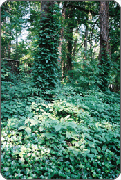 2. Cutting down shrubs such as the privet, Lagustrum sinense, and the olives of the genus Eleagnus. Eradication of both vines and shrubs may involve the use of the “Cut-Treat” approach to killing root systems (see Miller, 2003) as well as physical removal.